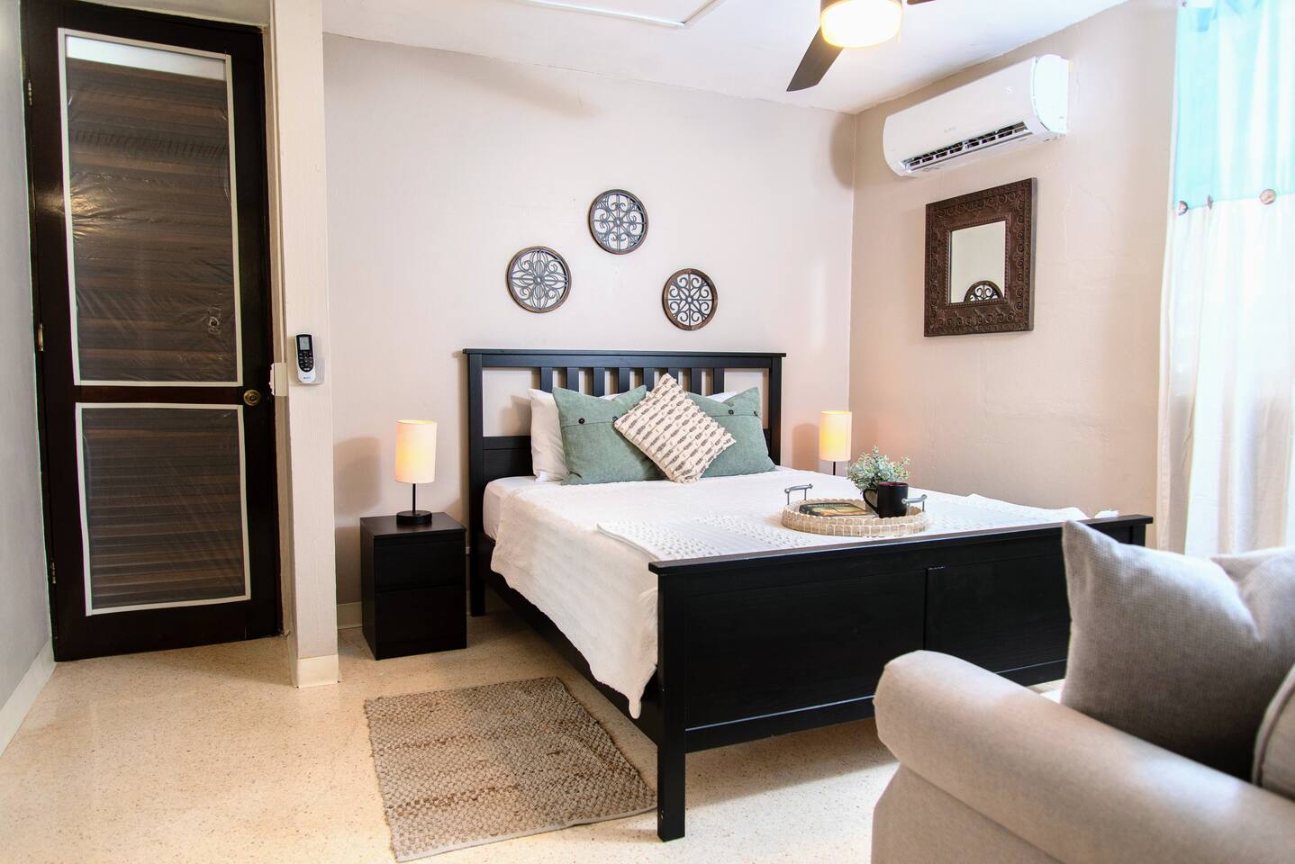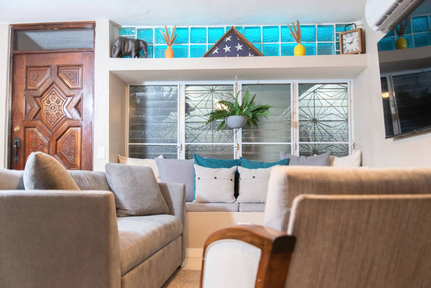 🏝 Modern Island Getaway w/ Pool Near Isla Verde Beach Welcome to your Caribbean retreat—just minutes from the airport, beaches, and Old San Juan! This stylish and spacious 3BR home is the perfect escape for families, couples, or small groups. ✨ Highlights ✔ Private Pool (16’ x 8’ x 42”) ✔ Outdoor Patio, BBQ & Covered Lounge ✔ Fully Equipped Kitchen + Dining for 6 ✔ 60” Smart TV w/ Netflix, Prime Video, Roku & Hulu ✔ 3 Queen Bedrooms + Sofa Bed + Air Mattresses ✔ Baby-Friendly Amenities (Pack ’n Play, Diaper Pail, etc.) ✔ Washer & Dryer ✔ Free Parking + Fast Wi-Fi 🛏 Sleep in Comfort Bedroom 1: Queen bed, A/C, closet, luggage rack Bedroom 2: Queen bed, HDTV, dresser, A/C Bedroom 3 (Master): Queen bed, HDTV, desk, walk-in closet + ensuite Living Room: Sofa bed + 2 queen-size air mattresses available Extra: Cozy window seat sleeps 1 🍽 Cook, Dine & Relax Full kitchen: Oven, microwave, fridge, freezer, toaster, blender, coffee maker Kitchen island w/ seating for 2 Dining table for 6 Open layout connects to the living room Board games + Smart TV entertainment 🛁 Bathrooms Full bathroom with large walk-in shower Ensuite bathroom in master bedroom Half bath for guests Fresh towels, hairdryer & toiletries included 🌴 Outdoor Paradise Private Pool (16’ x 8’, 42” deep, rectangular with rounded edges) Lounge chairs + shaded patio w/ BBQ grill Front porch + covered seating area String lights create magical evenings 👶 Traveling with Kids? We’ve got you covered: ✔ Pack ’n Play w/ sheets ✔ Diaper pail ✔ Waterproof baby pads 📍 Unbeatable Location Located in a quiet, safe neighborhood just: 5–8 min to Isla Verde Beach & SJU Airport 10–15 min to Old San Juan, Condado, & more Walking distance to groceries, pharmacies, and restaurants ✨ Whether you're lounging by the pool, cooking family meals, or heading out to explore Puerto Rico’s vibrant coastline and historic sites, this home is your perfect base for making lifelong memories.