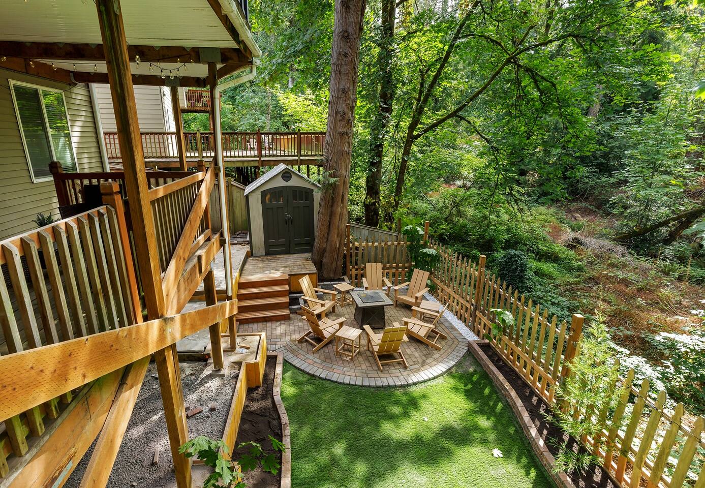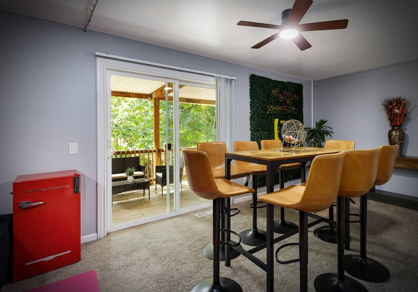 Guests have access to the downstairs side of the house, with a game room, providing exercise equipment. The suite has access to the spacious green backyard, fire pit, bbq and multi-level decks with gorgeous lush, relaxing views. Private codes to enter the home or park in the garage. The property can park cars on the street in the cul-du-sac. For parties over 4 guests, we require a $25 fee per person, per night