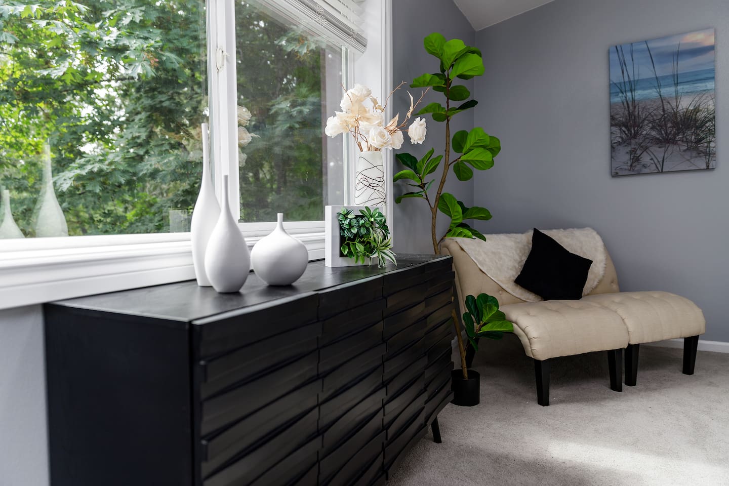 Our Home includes hi-speed internet 4 Bedrooms 2 King Beds 1 Queen Bed 2 Twin Bunks 1 Convertible Sofa (Queen) 1 Spa Chair Outdoor space includes 2 Chaise Loungers on the deck 1 Egg Chair on the deck Multiple seating on the deck 1 Fire Pit with 6 Adirondack Chairs 2 Chairs on the front porch Pets $300 charge (one animal allowed) Please indicate what breed, age, size and weight of your pet to be cleared on the reservation. Please show confirmation of vaccines. Dogs must be under 50 lbs, potty trained and continent. Cats must be declawed. No rottweiler, pitbull or aggressive breeds. Not responsible for any accidents with furniture, property or humans. There will be additional fees for any damages. Any shedding or accidents must be reported immediately to the host and cleaned up by the guest. Pet waste must be promptly disposed of in the trash. Dogs must never be unattended and be crated in the home for bedtime. Animals are not allowed on furniture or beds. Dogs require a leash to walk in the neighborhood. If the pet disturbs neighbors (barking, etc..) guest will be asked to correct behavior or remove the pet. Noise or any other damage or disturbances or breaking of any of the rules can be subject to fines determined by the landlord. Any damage (scratch marks, stains, odors, shredded or ripped items) will be charged to the guest. Failure to document any additional animals beyond one, will be grounds for additional fines and cancellation of reservation. For ESAs, there must be proof of official ESA documentation and license number on official letterhead paperwork. Top Nearby Attractions Multnomah Falls 16 miles Ski Bowl, Timberland, Mt Hood, The Meadows ski lodges 40-50 mins Colombia River Gorge hiking 20 min Iconic 620-foot waterfall at Columbia River Gorge. Portland Japanese Garden 30 minutes Tranquil garden retreat - Washington Park, Portland. Crown Point Vista House 25 minutes Historic sweeping panoramic views over Columbia River. Mount Hood National Forest 1 hour OxBow canoeing camping and picnic area - 20 mins Year-round outdoor adventures hiking, alpine lakes Airport 14 miles Parks 2 miles Local Shopping 3 miles Schools 3 miles Downtown Portland — 17 miles Boutiques, food carts, coffee shops, breweries, museums, and Powell’s City of Books. Corporations nearby Nike, Walmart, Amazon, The Home Depot, Frito-Lay, Lowe's. Intel, Providence Health & Services, Precision Castparts, StanCorp Financial Group, FLIR Systems and many technology firms. Hospitals and Medical Centers Legacy Mt Hood Medical Center Providence Portland Medical Center Adventist Health Portland Kaiser Sunnyside Medical Peace Health Southwest Medical Center Physicians Hospital OHSU Kaiser Permanente Shriners Hospital for Children Holladay Park Medical Center St Joseph Community Hospital Providence St Vincent Hospital Legacy Salmon Creek Medical Center Legacy Good Samaritan Medical Center Providence Williamette Falls Medical Center Skyline Hospital Hillsboro Medical Center Providence Hood River Medical Center